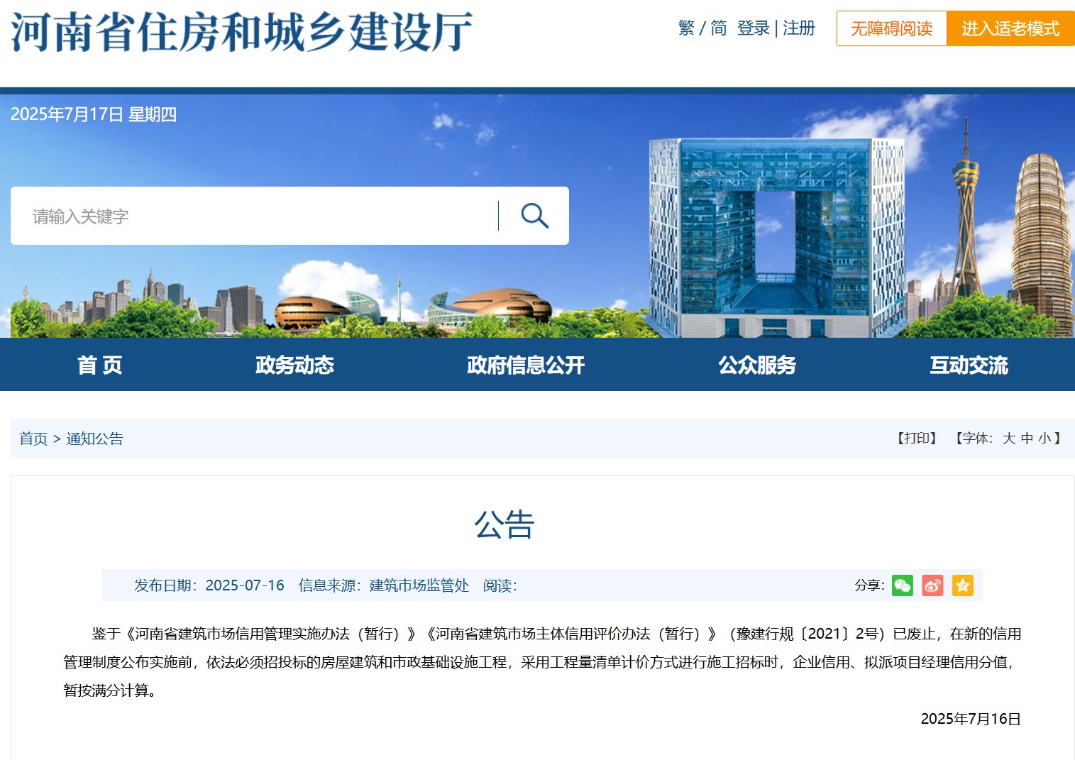 河南省住建廳發(fā)布關(guān)于房建、市政施工項(xiàng)目招標(biāo)時信用分計(jì)算的公告